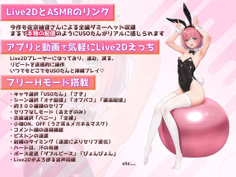 [直播主的性感直播通过Live2D和ASMR呈现]评论区真的很刺激……[狮子犬实验室第3作的主题是“直播主”!]我们将绘制在屏幕另一侧进行“秘密性感平衡球直播”的直播主。这次我们将提供最高级别的Live2D和全部配音的体验。美少女直播主USO谭的平衡球运动直播、背面账号直播主咲的听众口交配信。流畅的直播画面、直播画面外的“只有你知道的私密姿势”,让您仿佛亲临现场从手机上观看。当然,狮子犬实验室独有的创意也会满载而归,在自由模式下,您可以控制直播,尽情感受其中的乐趣!